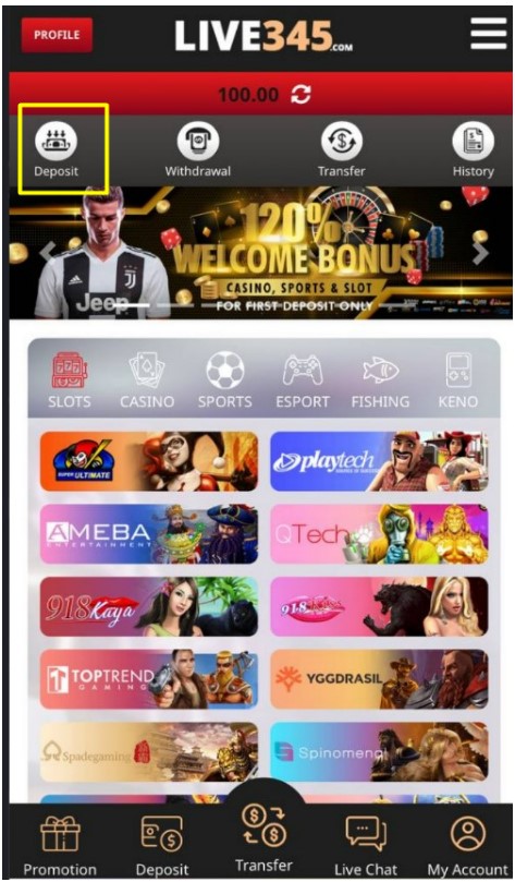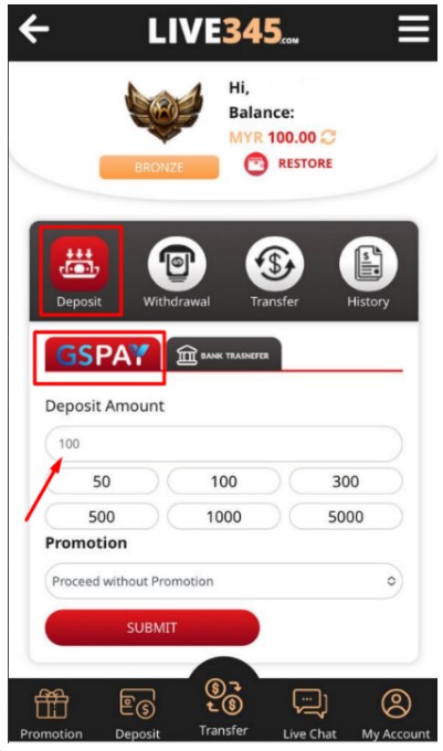 Select the date and time that you made your deposit at DEPOSIT DATE TIME, next for PROMOTION can select any promotion you interested or proceed without promotion. Last attached the receipt of your deposit at CHOOSE FILE and select from your photo gallery and your deposit. Your deposit will be done within 3 – 5 minutes